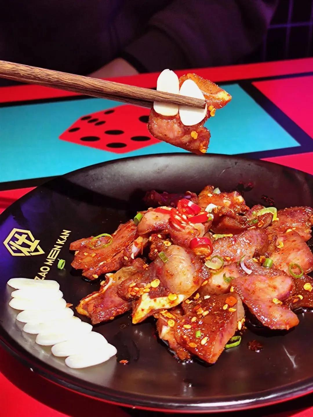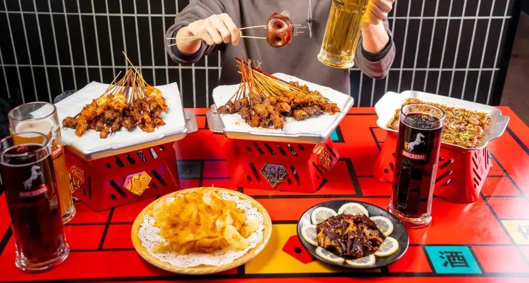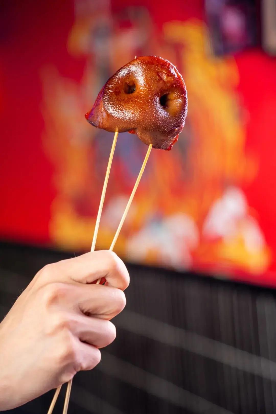 店内有烤猪鼻、猪鼻筋、红柳枝羊肉串、虾包蛋、很多特别少见的产品,满足于年轻人的猎奇和社交打卡心理!拍照打卡发朋友圈,必须效果拉满。