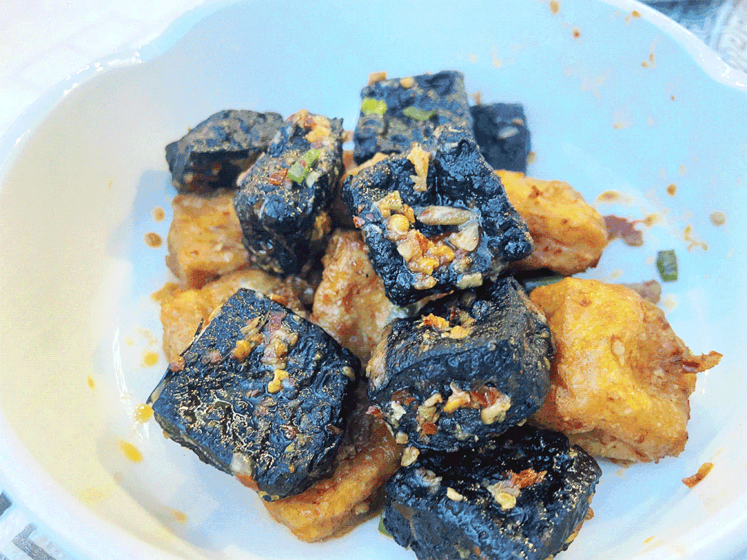 一改传统的大片方形臭豆腐模样,取而代之的是迷你可爱的小粒臭豆腐。