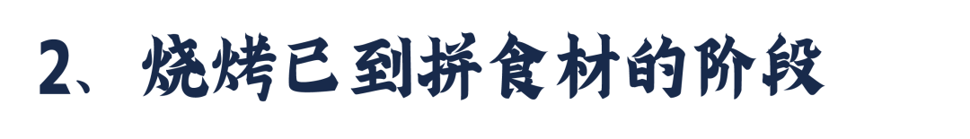 随着供应链的完善,尤其是冷链物流的发展,烧烤与其他品类一样,也进入到了拼食材的阶段。